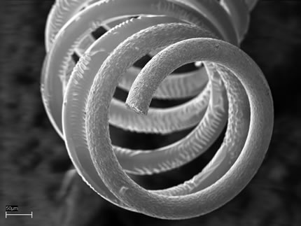 SEM uses a beam of electrons rather than visible light to illuminate the sample. As the wavelength of this beam is much shorter than visible light it is able to resolve much smaller features. These can approach atomic sizes and hence incredible detail can be obtained. Samples for SEM must be conductive and hence most samples need to be coated either with gold or carbon to produce an conductive path for the beam and prevent charge build up. Materials Technology will conduct all sample preparation as part of our service.