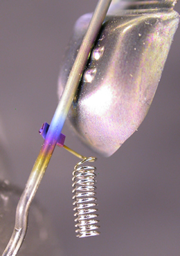 The remains of this bulb filament were examined to establish whether the filament was lit at the time of the accident. This example shows significant oxide growth demonstrating it was lit at the time of the accident. Unfortunately in many motorcycle accidents this is often the case and the cars often fail to see them.