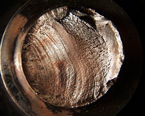 The photo at left shows the remains of a light bulb with evidence of oxide formation from the dipped beam filament. This indicates the dipped beam was on.Even broken bulbs and very small residues can be analysed. We look at filament breakage, oxide formation, glass residues etc to determine the state of the bulb. We have a vast database of historical evidence to call on.